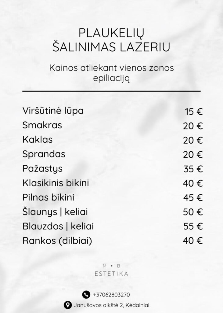 Tel. (0–628) 03270 El. paštas: info@mbestetika.lt
